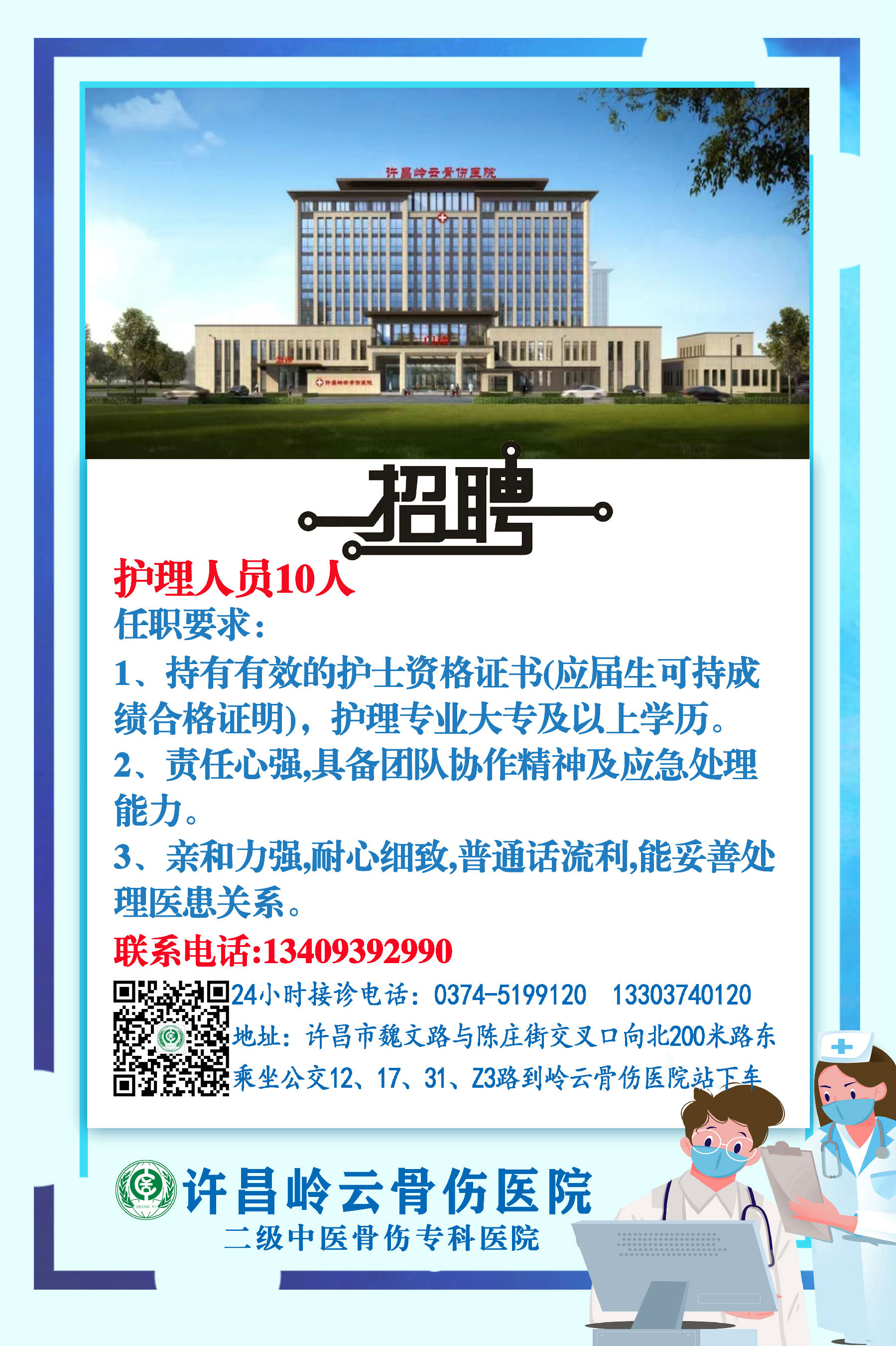 许昌岭云骨伤医院护理人员招聘公告【2025】